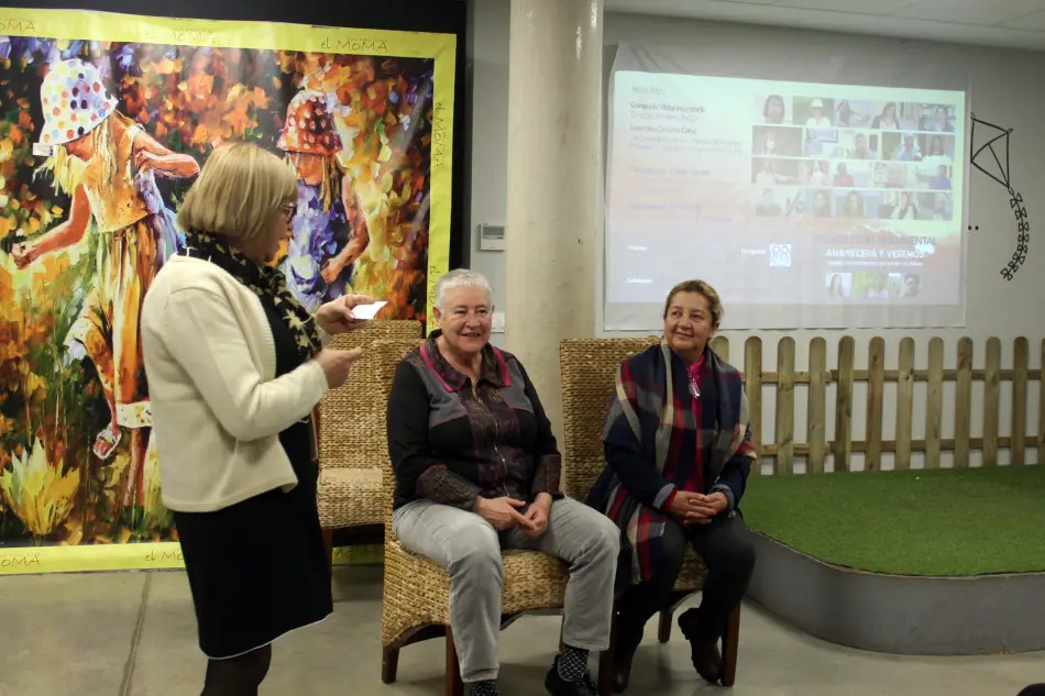 El viernes 19 de enero acudimos a la cena de invierno de Dones de Picanya en el Espai Cultural Moma y, al finalizar, proyectamos el documental “Amanecerá y veremos. Mujeres protagonistas de paz en Colombia”. Después del pase, intercambiamos sensaciones ante el documental y experiencias con las mujeres de la organización, de la mano de Consuelo Vidal, coordinadora de Atelier, y Leonora Castaño, vicepresidenta de la Colectiva de Mujeres Refugiadas, Exiliadas y Migradas en España e integrante de la Mesa de Apoyo.