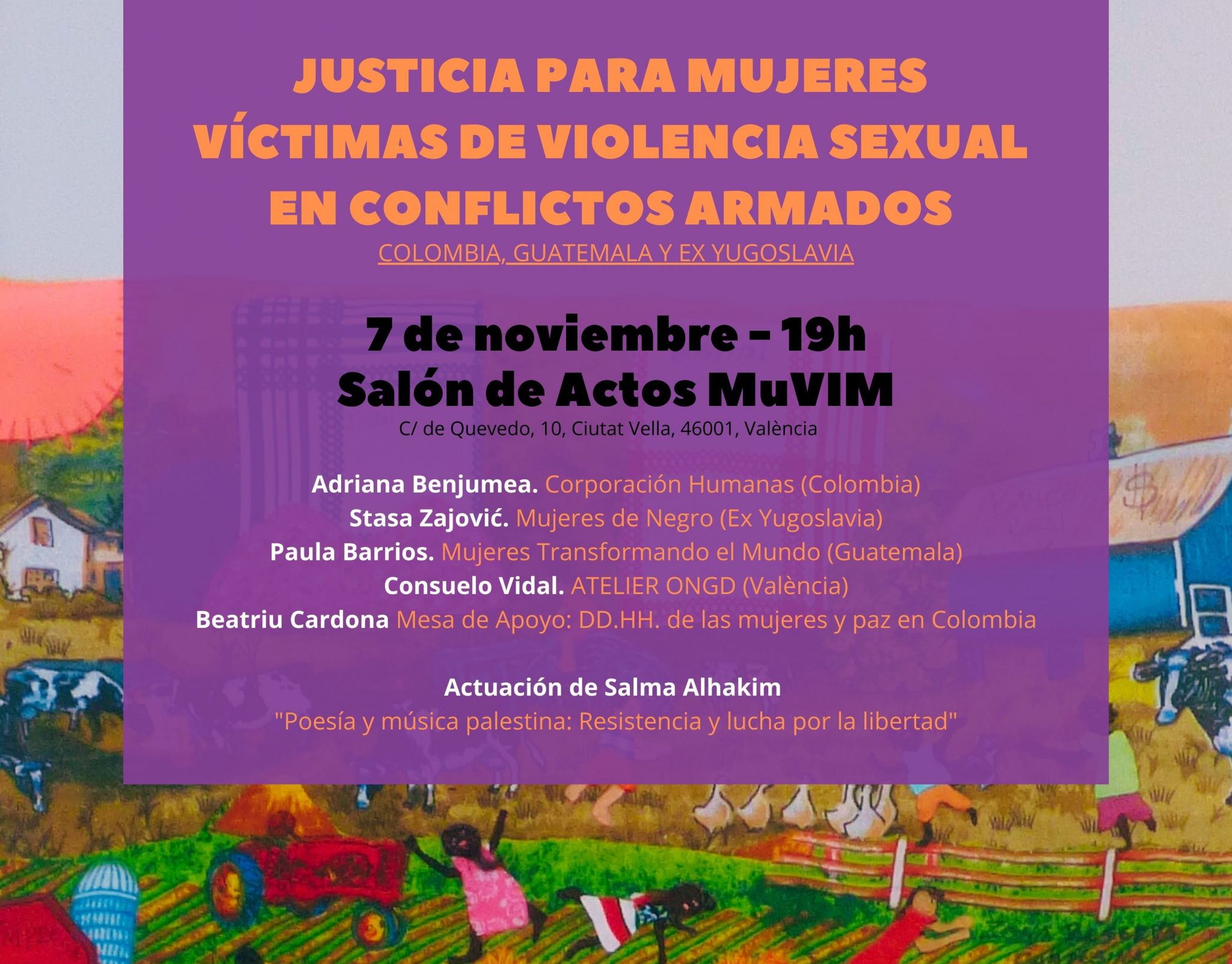 Desde Atelier ONGD, la semana pasada decidimos aplazar la realización del Foro «Justicia para mujeres víctimas de violencia sexual en conflictos armados», programada para esta semana en València. La DANA ha provocado en muchos pueblos de la provincia de València incontables pérdidas humanas y materiales y todos los esfuerzos sociales tienen que estar dirigidos al … Leer más