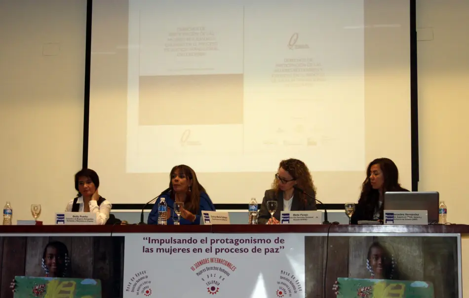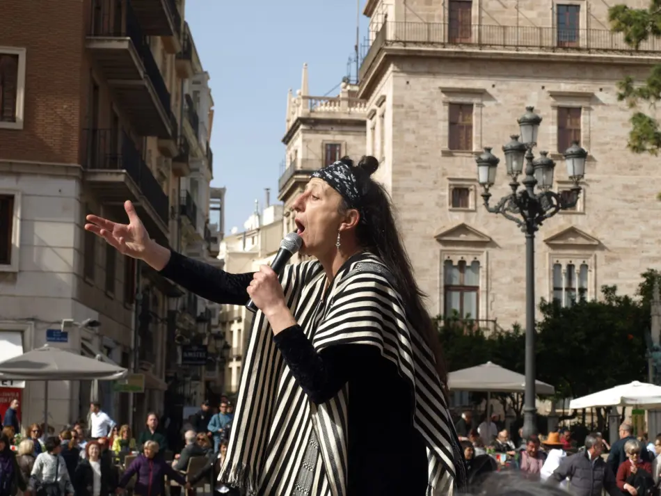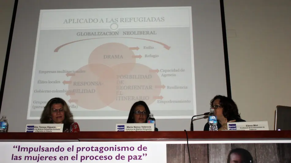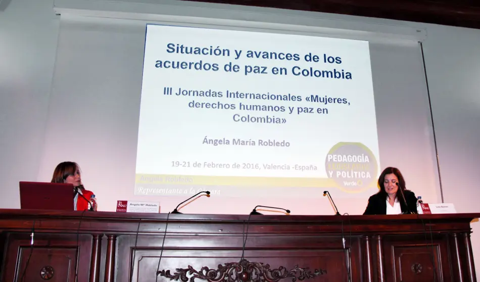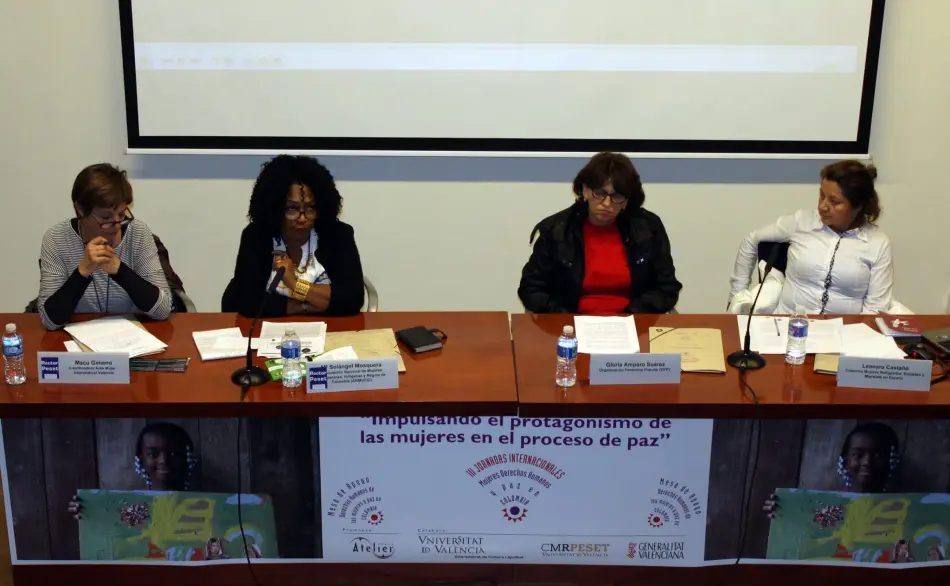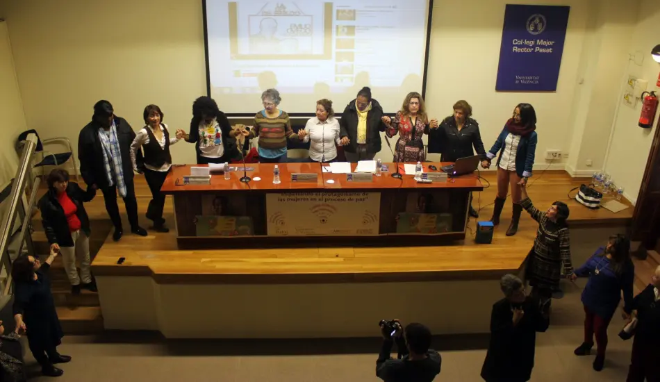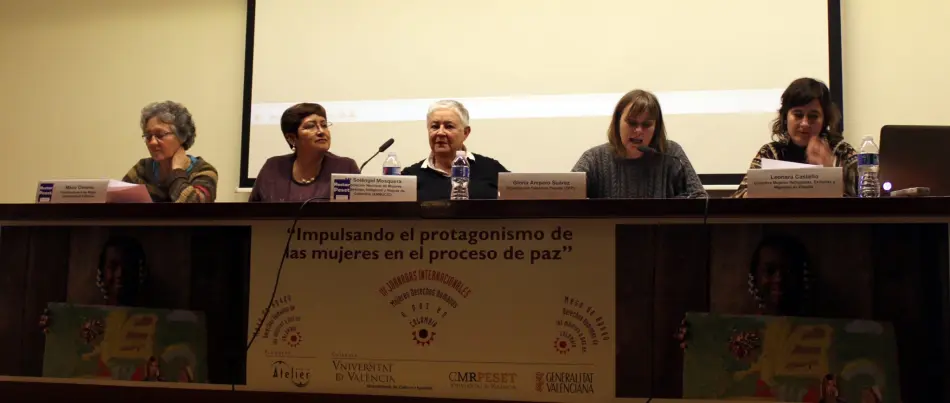 Vídeo de la performance Pro-curadoras de paz, celebrada el 21 de febrero del 2016 en València como acto de clausura de las III Jornadas Internacionales Mujeres, Derechos Humanos y Paz en Colombia, organizadas por la Mesa de Apoyo a la Defensa de los DD.HH. de las Mujeres y la Paz en Colombia y Atelier ONGD. Las Jornadas se llevaron a cabo en el contexto del proyecto Impulsando en protagonismo de las mujeres en el proceso de paz de Colombia, cofinanciado por la Generalitat Valenciana.