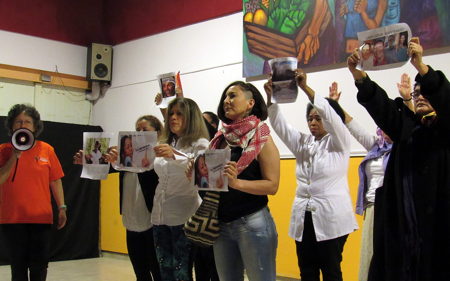 Mujeres exilio Colombia escena teatro mujeres con maletas